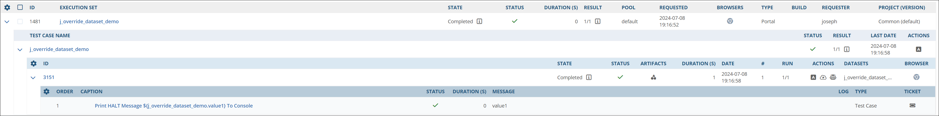 1- Suppose you have the data template "j_override_dataset_demo" with field "value1" and inside this template, you have dataset "j_override_dataset_demo" with value "value1" as in next screenshot.