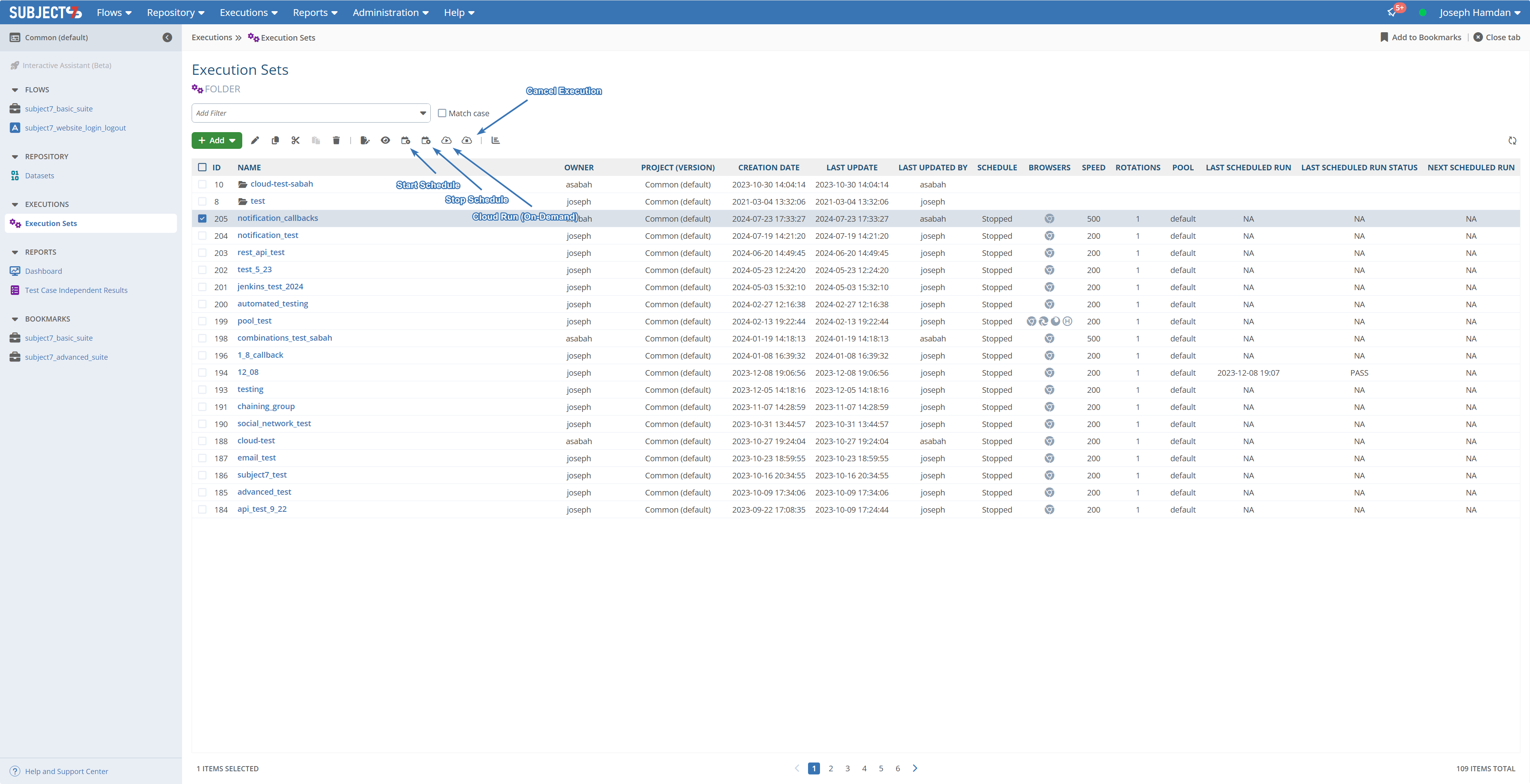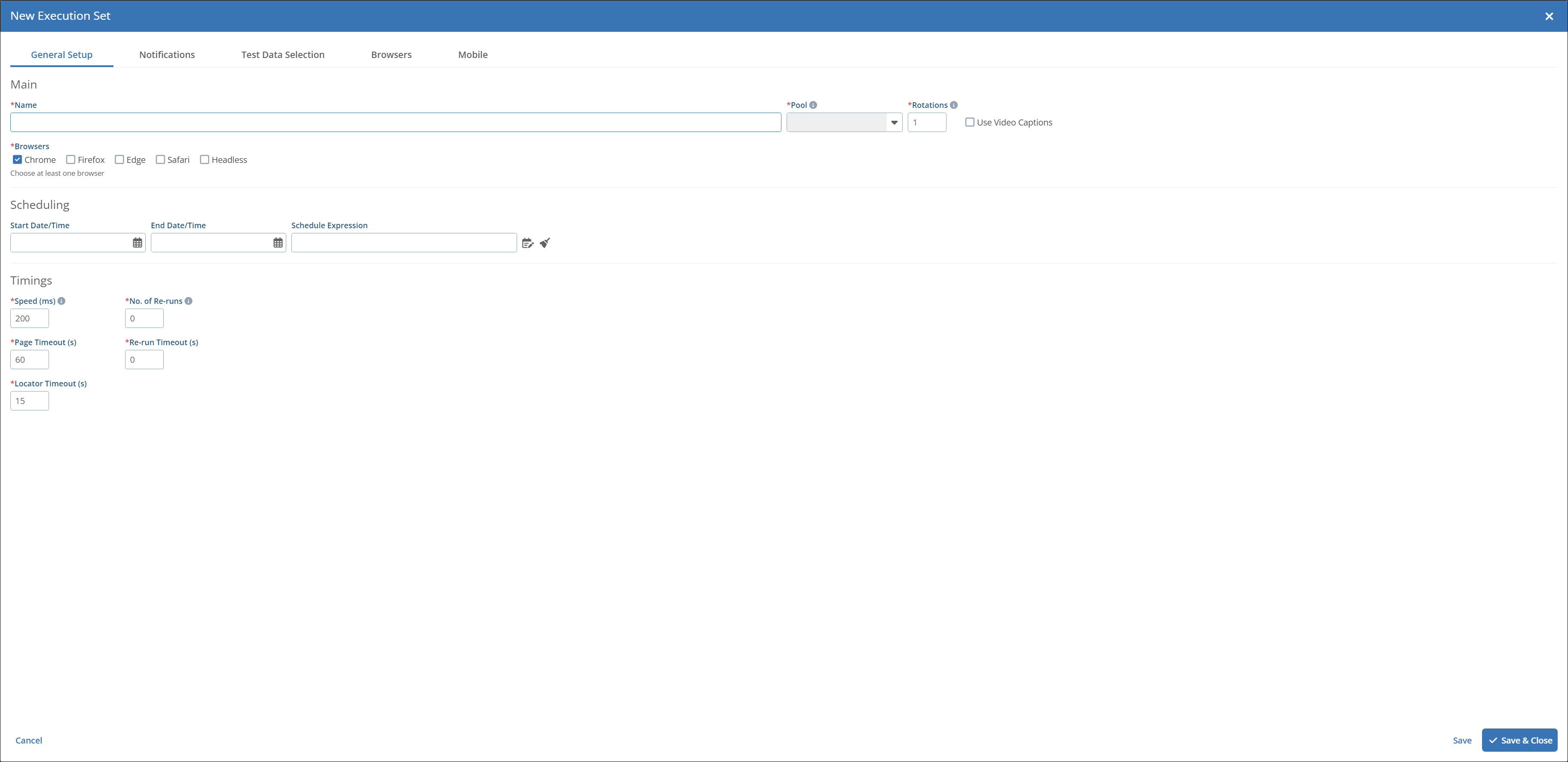 In order to run your tests on the cloud, you can either run the test case on the cloud independently or create create an execution that automatically runs the test case for you. Execution Sets can be triggered based on scheduling parameters you can select and can also send you notification e-mails.