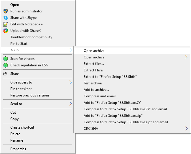 5. Open the installer using 7-Zip by right-clicking it > Open Archive