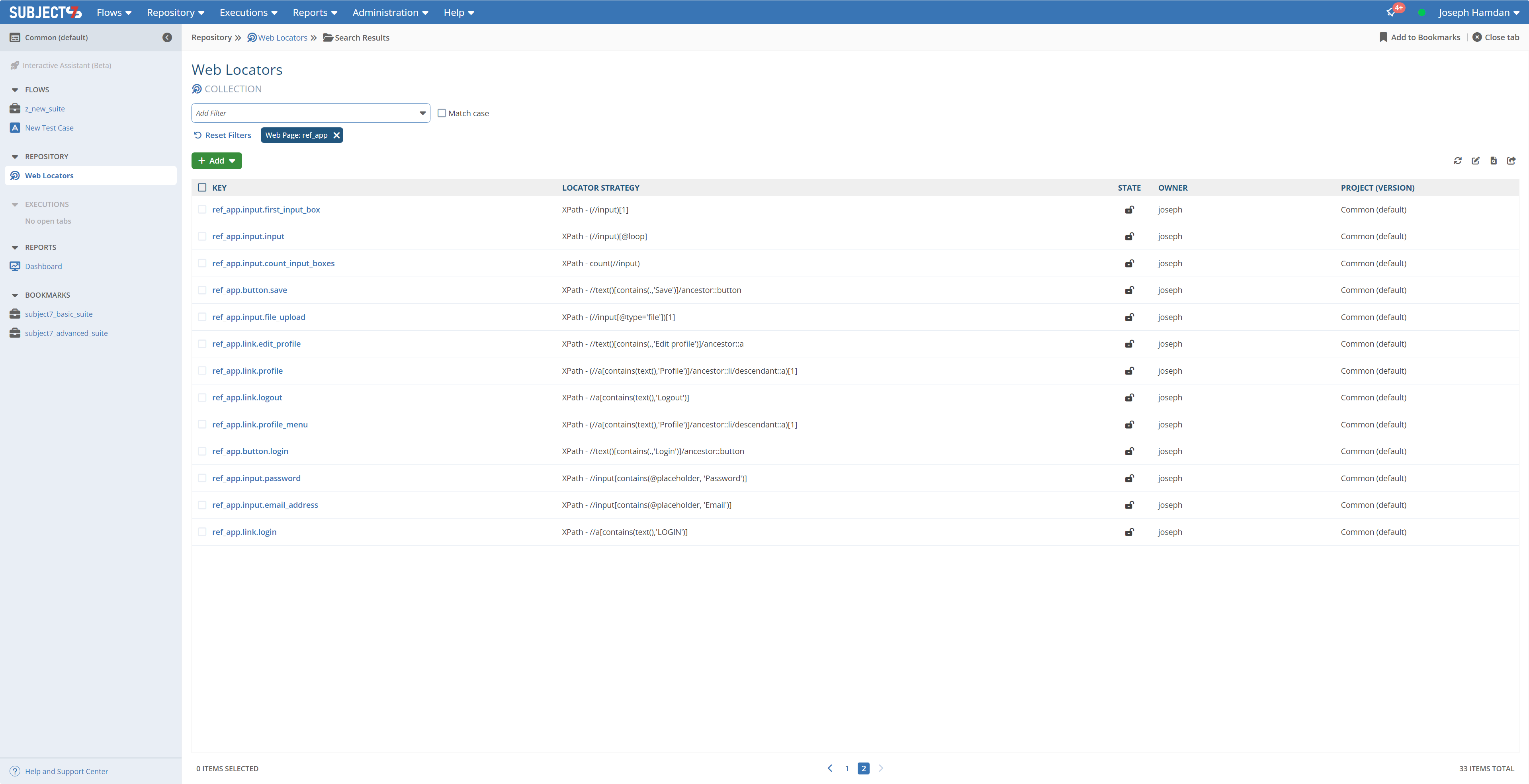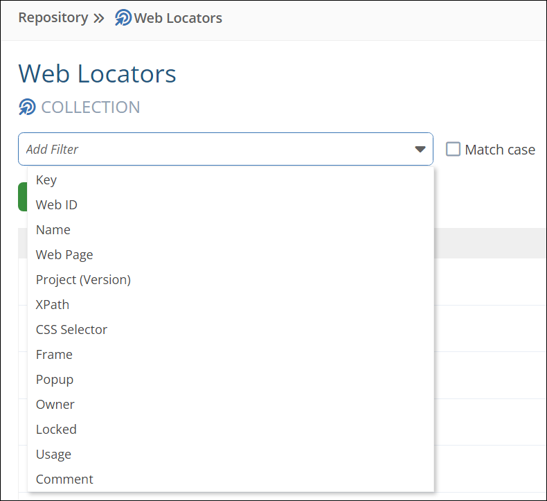 - For example, the Type [Web Page] was used with search parameter [*ref_app] to locate all web locators on the page [ref_app]. The result is below: