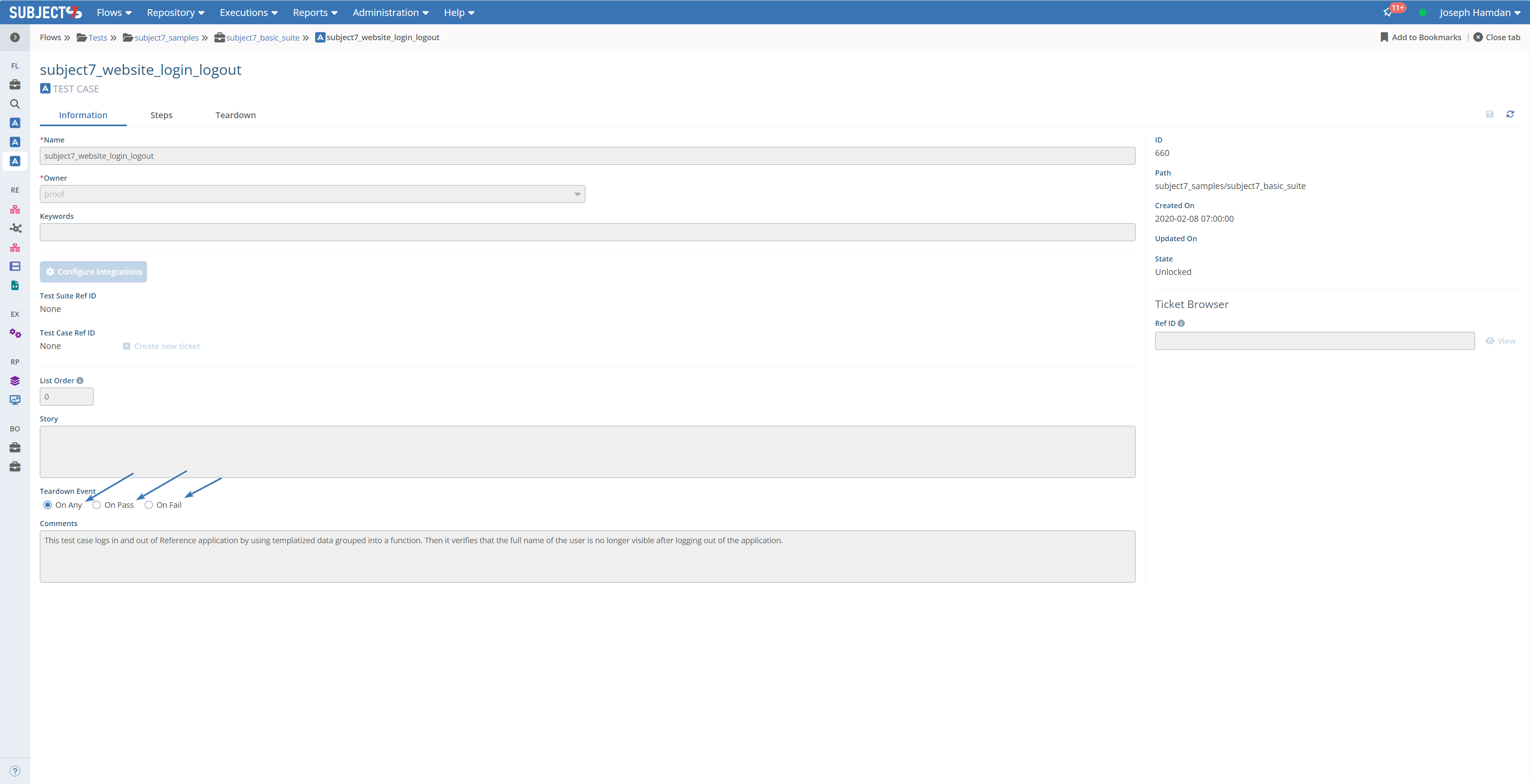 4- Select the Teardown Event which is the condition of the entire test case status to set this teardown in action. You can select from the below options: