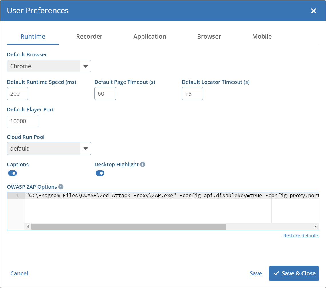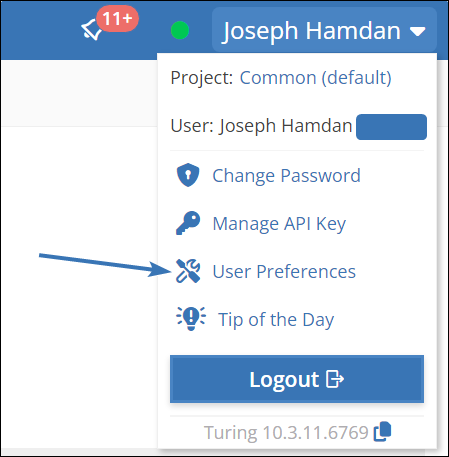3- In case you want to modify specific settings before you run your test case, hover over your name and click User Execution Preferences as below.