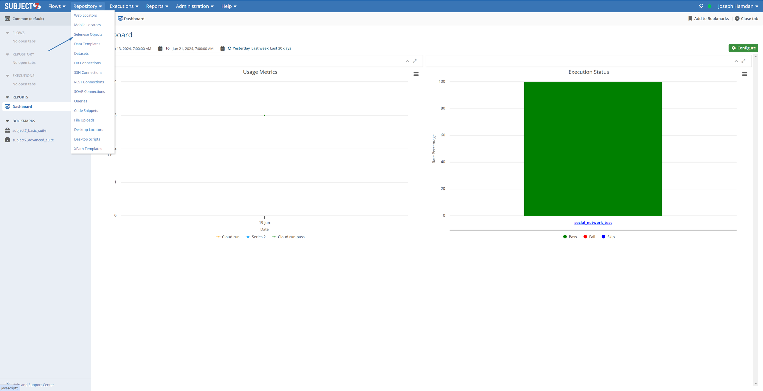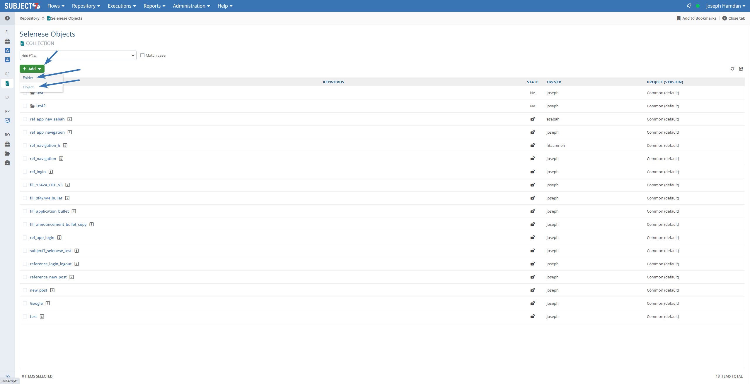 4- Back on Subject7, click Artifacts and select Selenese Repository to define your Selenese object.