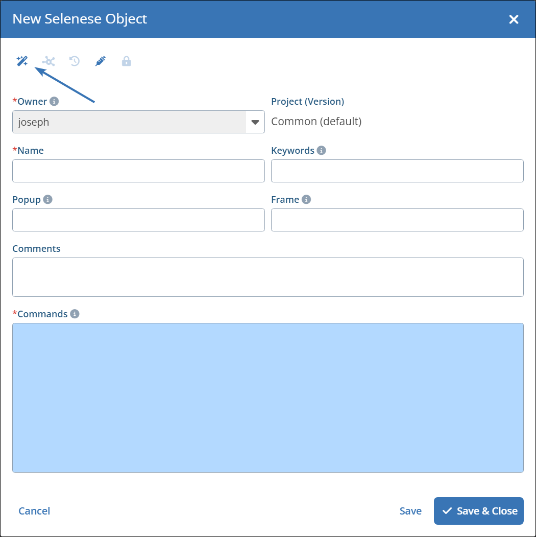 8- For Selenium IDE version 3.x, upload the file that was saved from the Selenium IDE project.