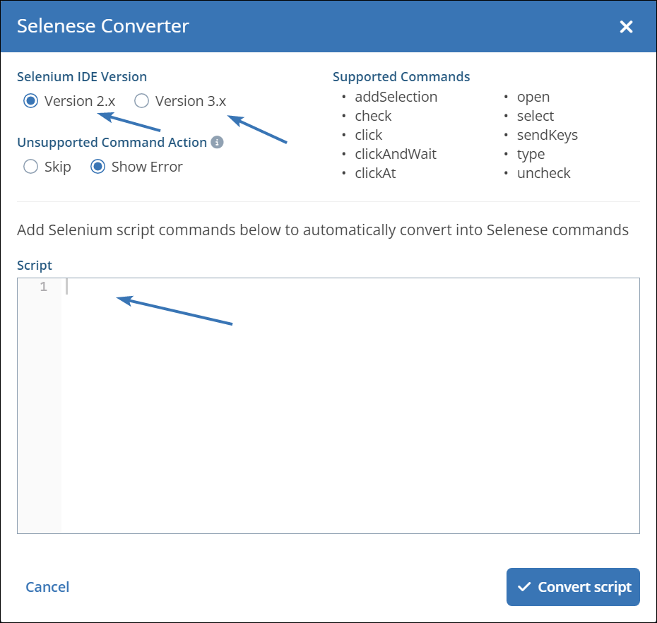 To convert a test case recorded with Selenium IDE, follow the steps below or watch the video after the steps: