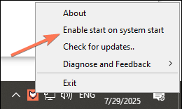 12- For future use, you can enable/disable starting Subject7 Player when the operating system starts. To do so, right click on Subject7's icon in the hidden icons menu and click "Enable start on system start". The next time you restart your device, you will notice the Subject7 player running automatically. To disable this, right click on Subject7's icon in the hidden icons menu and click "Disable start on system start".