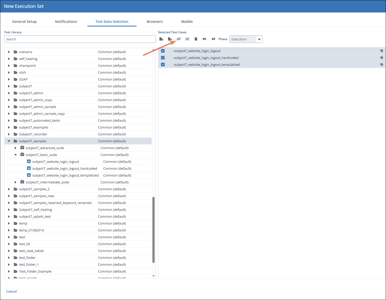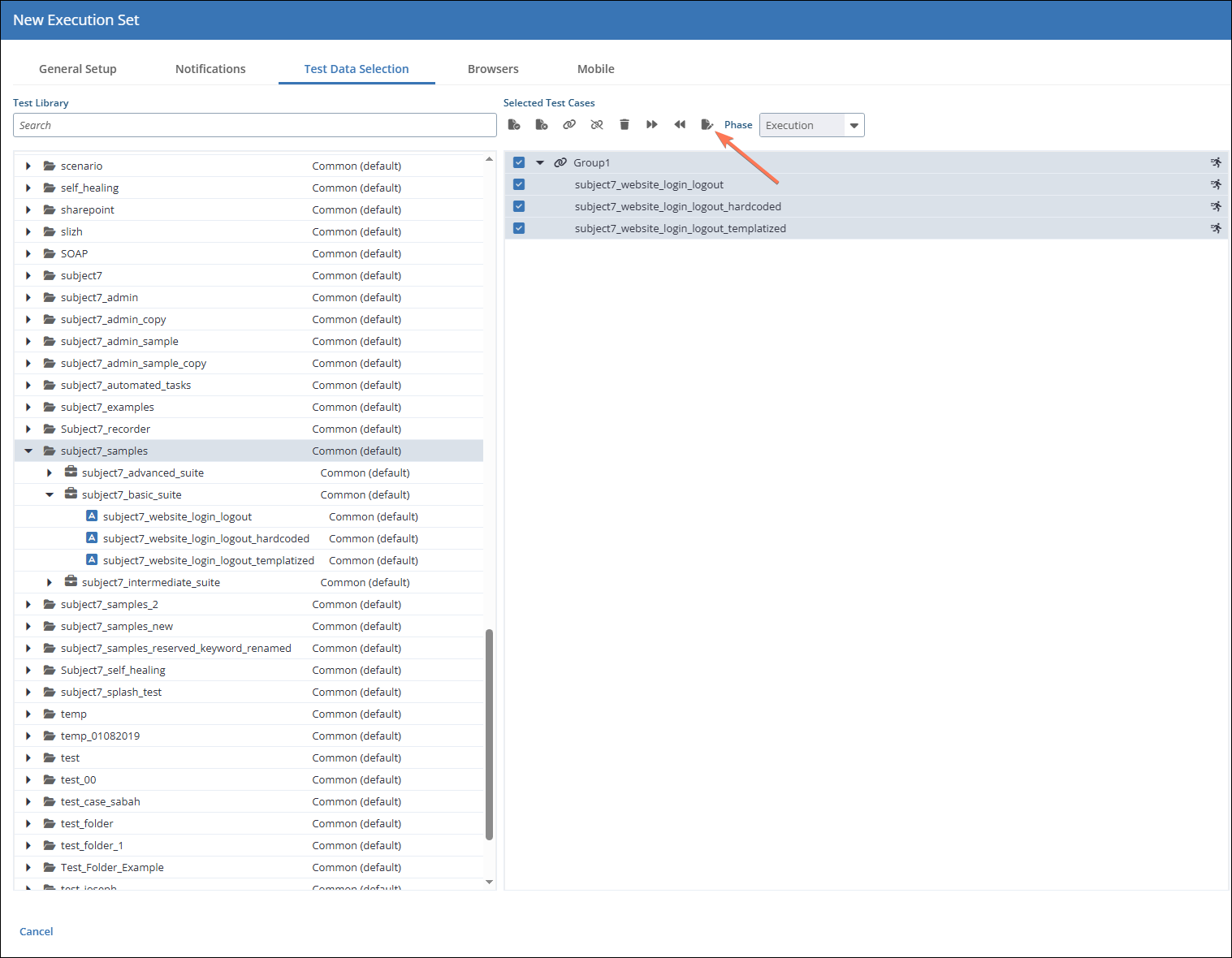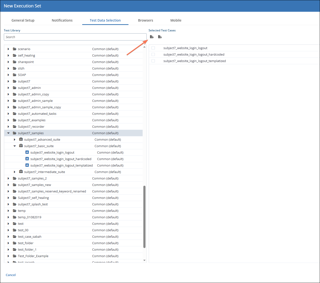 3. On the Tests Data Selection tab, select your different test cases that use the same credentials